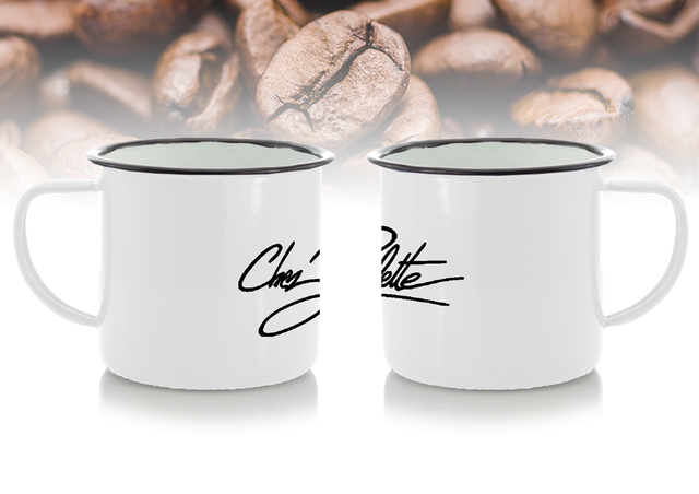 Ce mug émaillé de 350 ml a un design vintage. Le design est fini avec des "imperfections" et des petites bosses pour un effet rétro (voir photos produit).